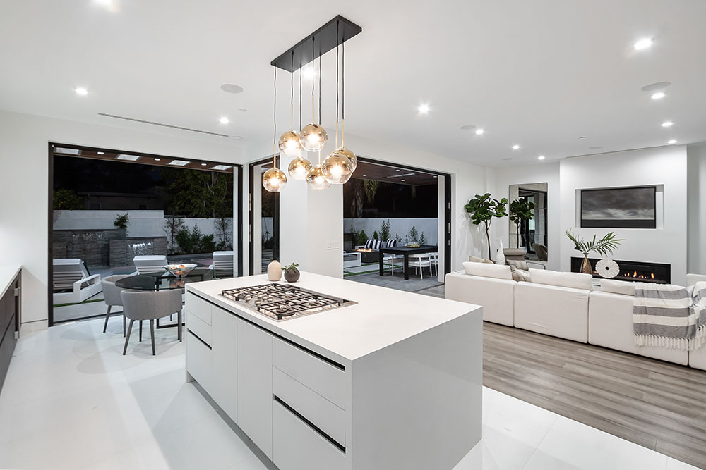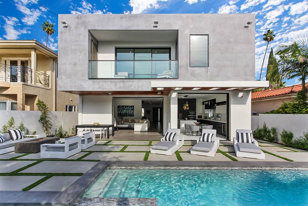 Brand New! Luxurious Modern Masterpiece on one of the most beautiful palm-tree lined wide streets in Beverly Hills! “The Instagram Street” Carson Road! Pass the immaculate landscaping to this stunning twostory modern home on a full-size 50 ft wide, nearly 6,500 sq. ft. lot. Guests are greeted by hardwood floors, high ceilings, & luxurious finishes throughout. A wide entry hall with floating staircase is flanked by an elegant formal dining room. The designer kitchen boasts Corian counter tops & Miele appliances. An inviting family room features a beautiful fireplace, oversized custom pocket sliding glass doors which open up to the remarkable backyard perfect for indoor/outdoor entertaining. Upstairs, the master suite showcases a fireplace, balcony overlooking the pool, and an incredible walk-in closet. The spa-like master bath offers dual