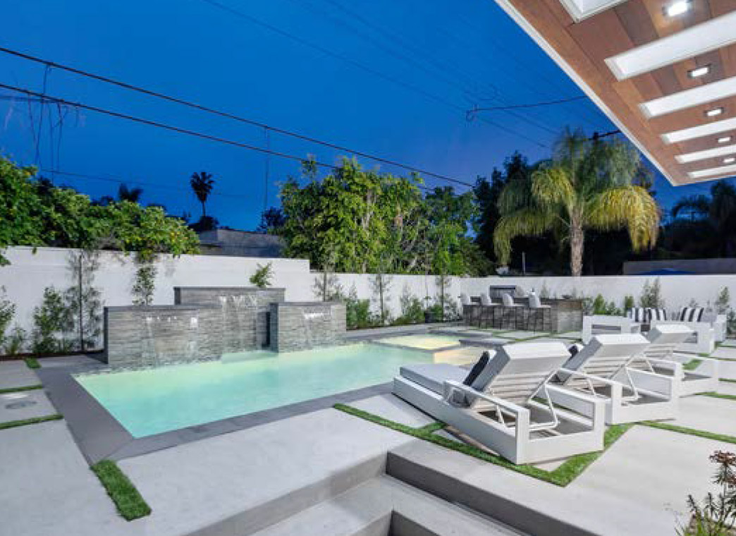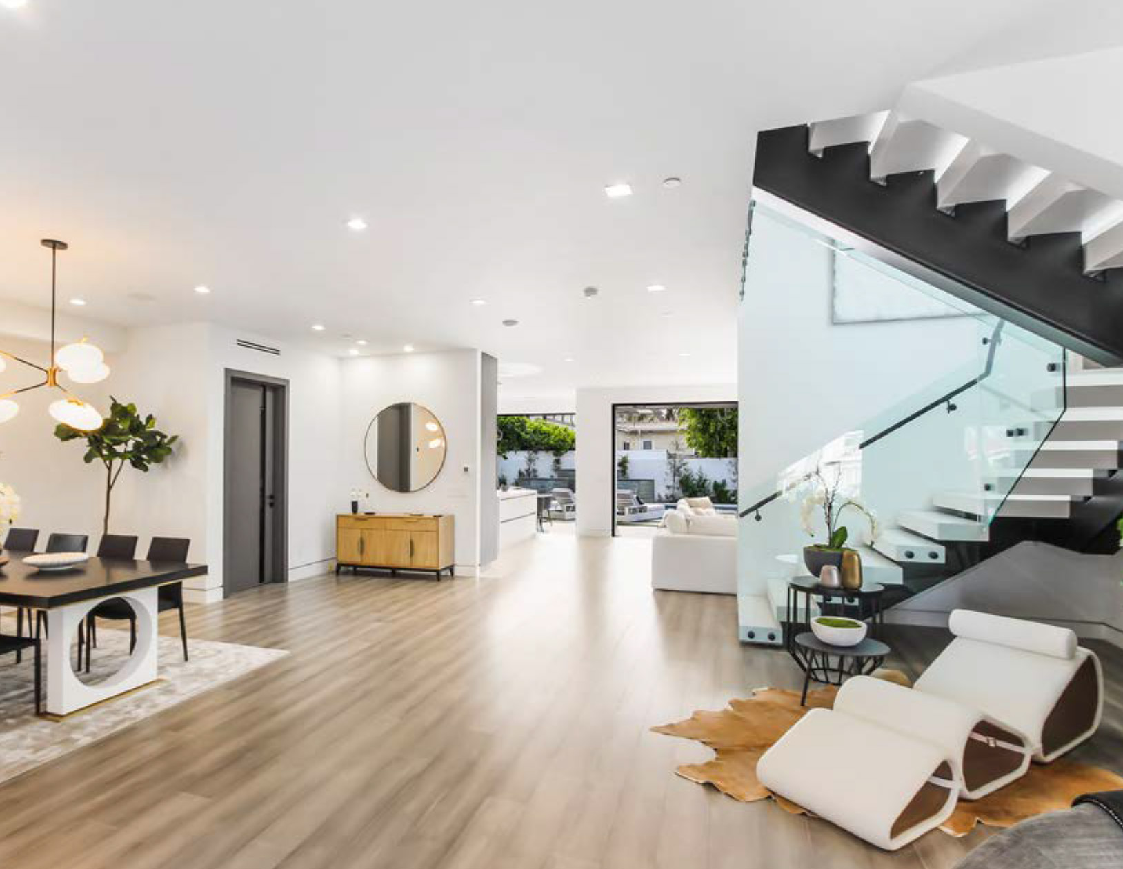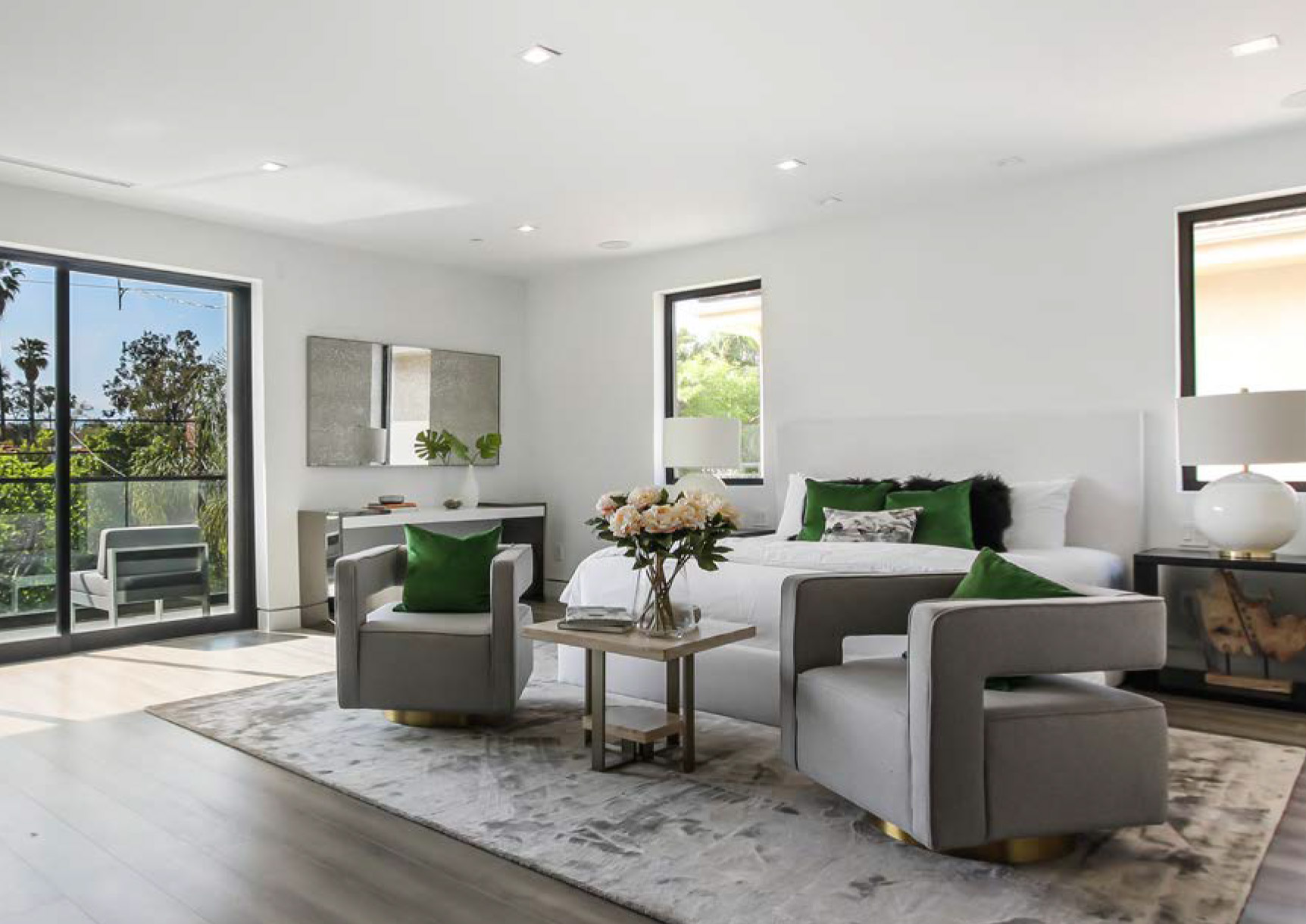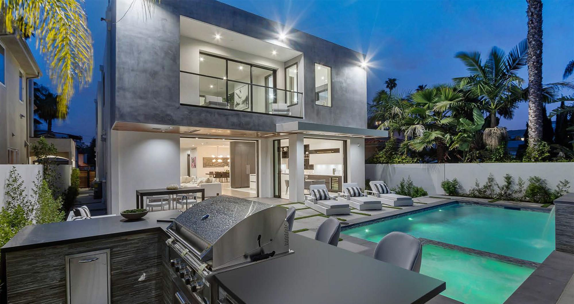 Luxurious Modern Masterpiece on one of the most beautiful palm-tree lined wide streets in Beverly Hills! “The Instagram Street” Carson Road! Pass the immaculate landscaping to this stunning two-story modern home on a fullsize 50 ft wide, nearly 6,500 sf lot. Guests are greeted by hardwood floors, high ceilings, & luxurious finishes throughout. A wide entry hall with floating staircase is flanked by an elegant formal dining room. The designer kitchen boasts Corian counter tops & Miele appliances. An inviting family room features a beautiful fireplace, oversized custom pocket sliding glass doors which open up to the remarkable backyard perfect for indoor/outdoor entertaining. Upstairs, the master suite showcases a fireplace, balcony overlooking the pool, and an incredible walk-in closet. The spa-like master bath offers dual vanity, soaking tub & rain shower. The private entertainer’s yard presents a sparkling pool, barbecue and outdoor fire-pit.