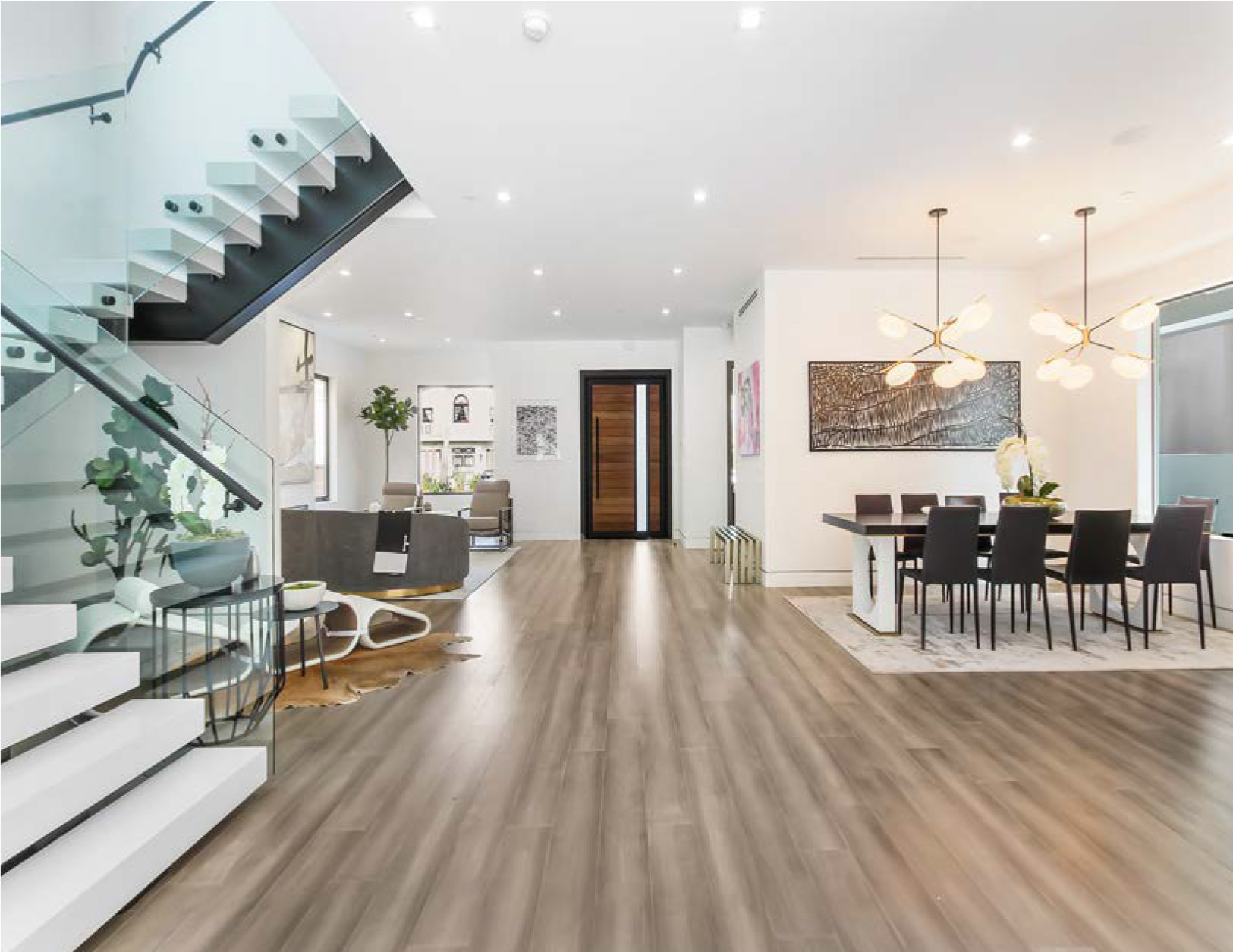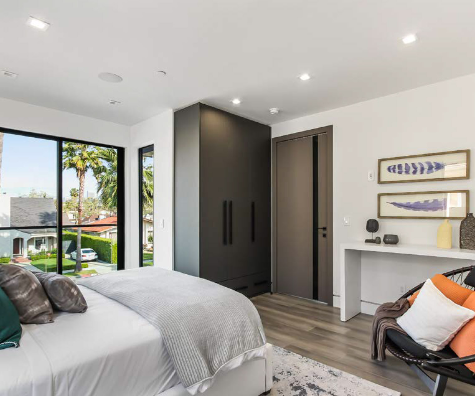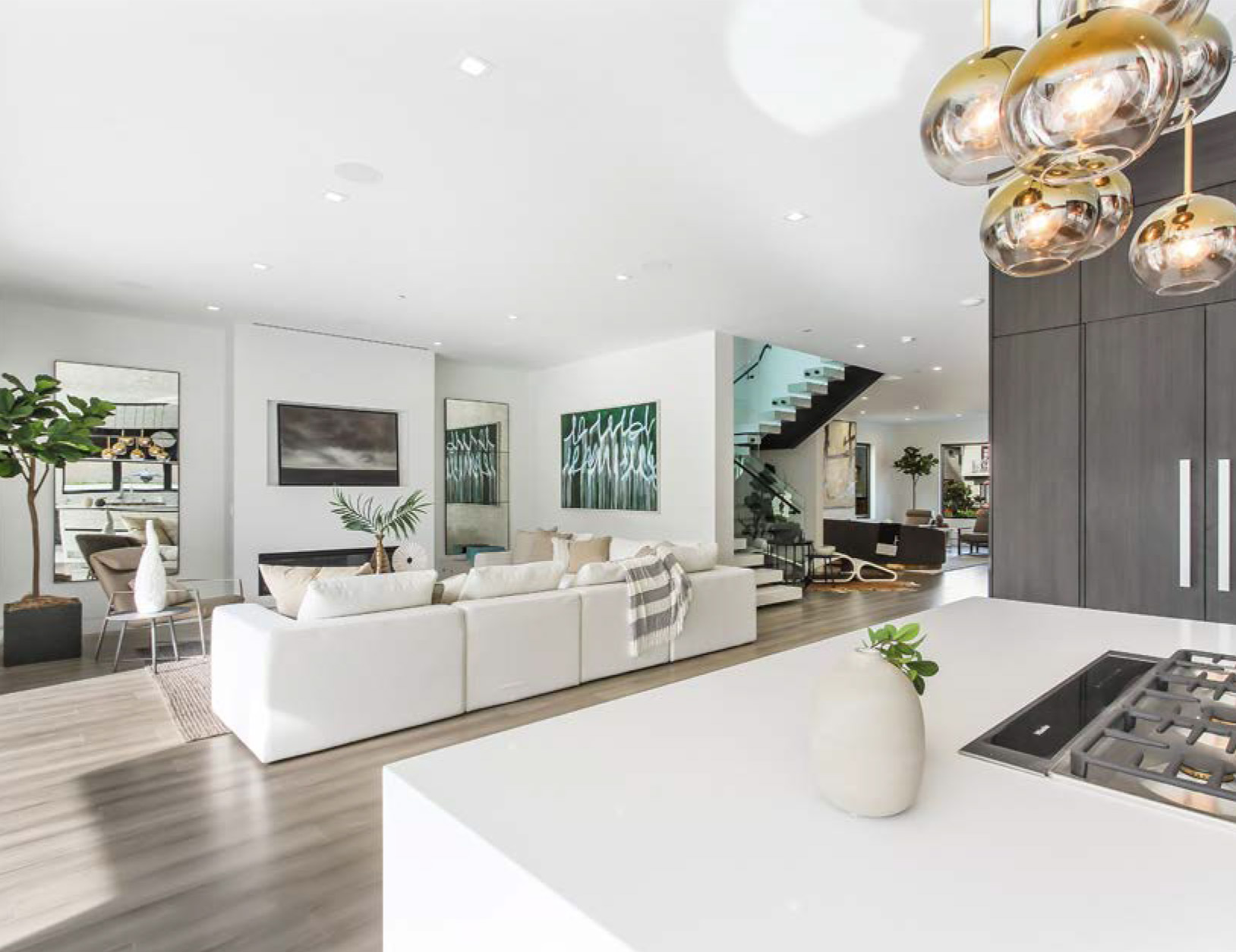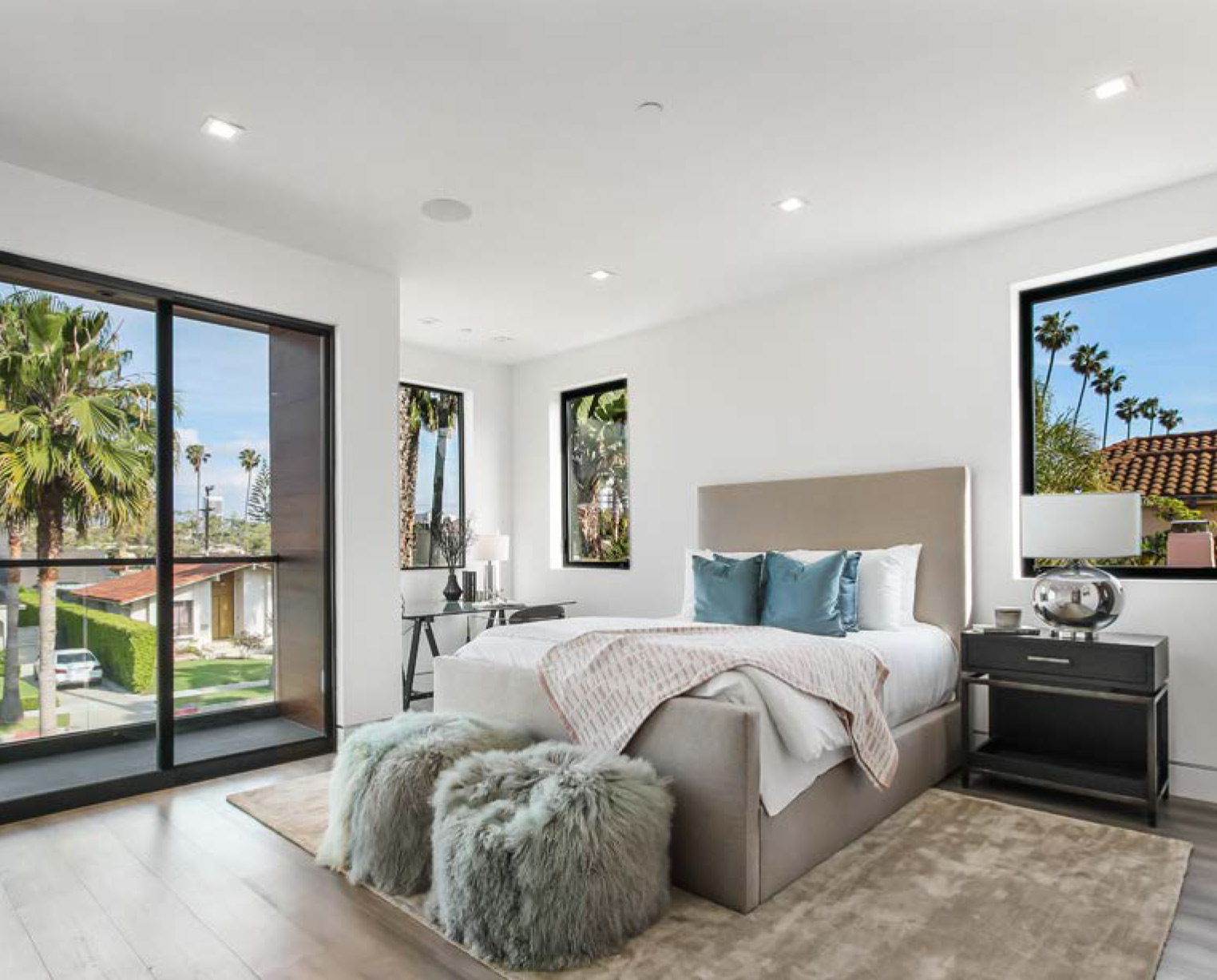 Luxurious Modern Masterpiece on one of the most beautiful palm-tree lined wide streets in Beverly Hills! “The Instagram Street” Carson Road! Pass the immaculate landscaping to this stunning two-story modern home on a fullsize 50 ft wide, nearly 6,500 sf lot. Guests are greeted by hardwood floors, high ceilings, & luxurious finishes throughout. A wide entry hall with floating staircase is flanked by an elegant formal dining room. The designer kitchen boasts Corian counter tops & Miele appliances. An inviting family room features a beautiful fireplace, oversized custom pocket sliding glass doors which open up to the remarkable backyard perfect for indoor/outdoor entertaining. Upstairs, the master suite showcases a fireplace, balcony overlooking the pool, and an incredible walk-in closet. The spa-like master bath offers dual vanity, soaking tub & rain shower. The private entertainer’s yard presents a sparkling pool, barbecue and outdoor fire-pit.