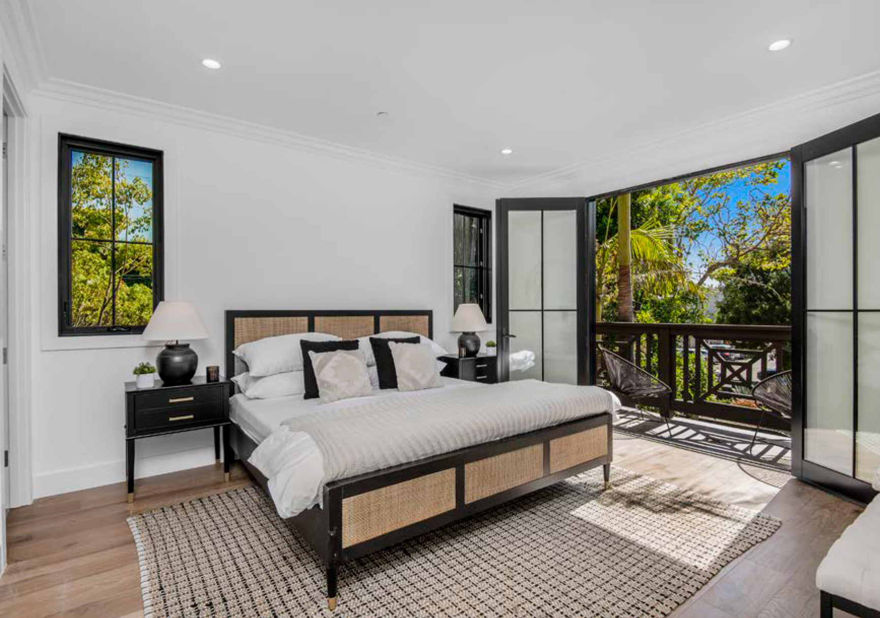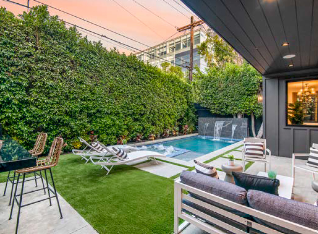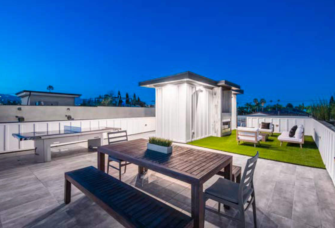 Proceed to an opulent dining room alongside a custom designed oversized kitchen complete with Quartz countertop and Thermador appliances. Enjoy the family room where custom PRL sliding doors provide a remarkable view of the backyard complete with built-in-BBQ, heated spa & pool with cascading waterfall. Ascend the stairs to an elegant double-size master suite that showcases a private terrace, fireplace, expansive glass shower & freestanding tub. At night, enjoy 360 degree views of LA atop the private roof deck. This smart home is equipped with Control 4 technology & cellular encompassing security throughout.